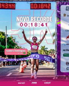 Numa edição mais que imponente, apresentada pela Baixa Pace, marca de óculos esportivos, a Run For Girls teve novo recorde na prova dos 5 km. A atleta e empresária Isadora Domingues completou o percurso com o tempo de 18 minutos e 41 segundos.